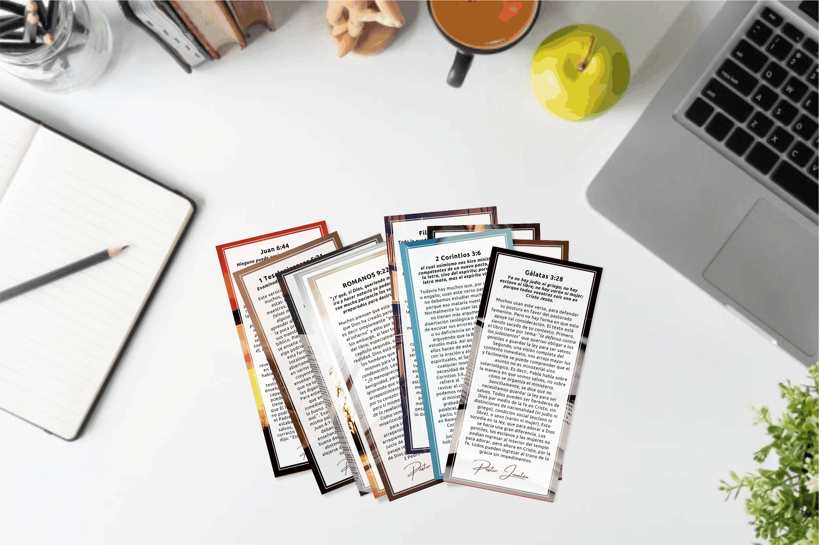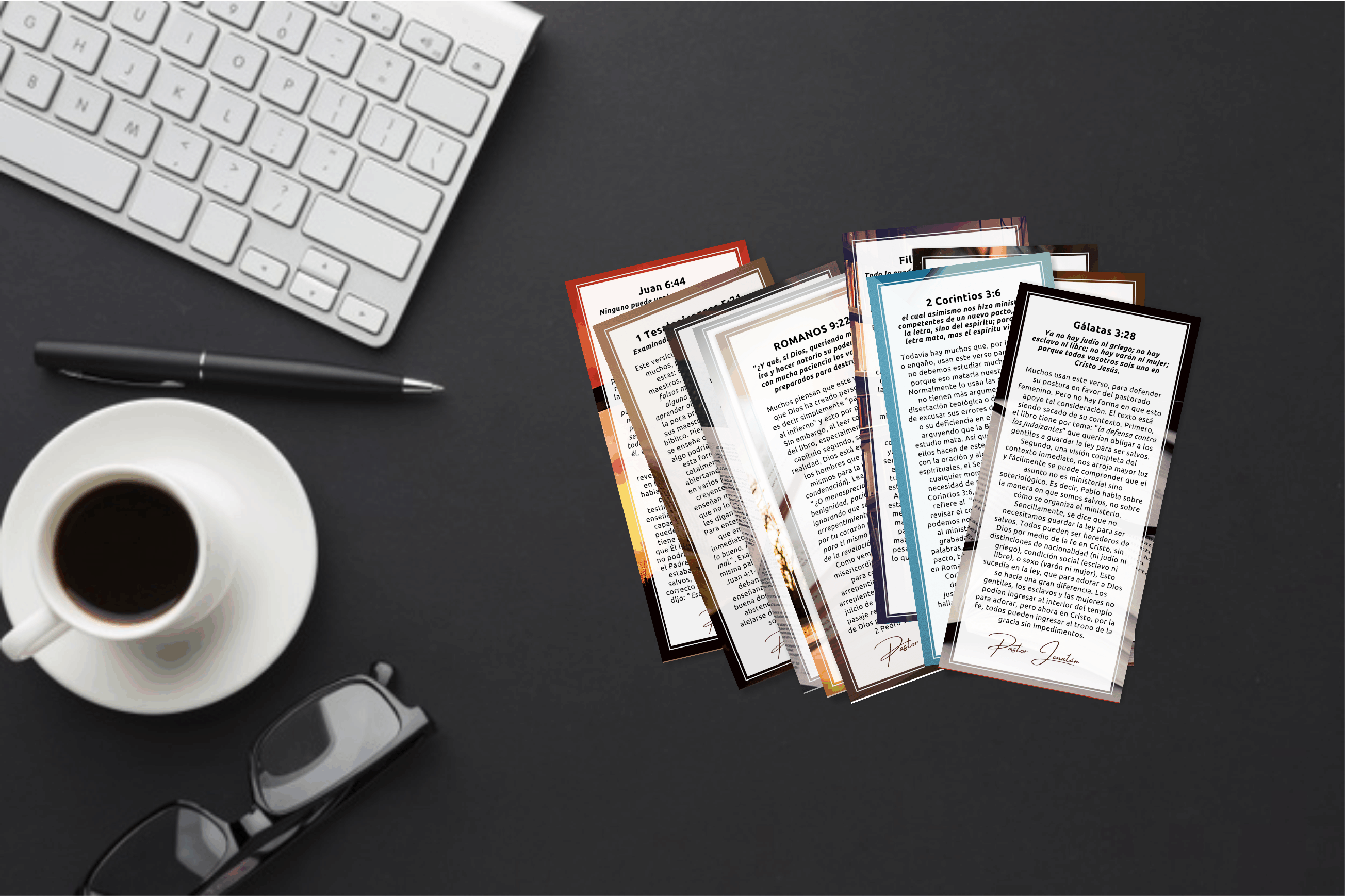 Lleva 5 tarjetines para imprimir y usar como separadores bíblicos o para presentarlo como una defensa de la fe bíblica. Cada uno expone un verso, que usualmente es sacado de su contexto para ciertas doctrinas o prácticas equivocadas. El valor de cada tarjetin es de 1.00 dólar. El valor por los 5 tarjetines juntos es 3.00 dólares.